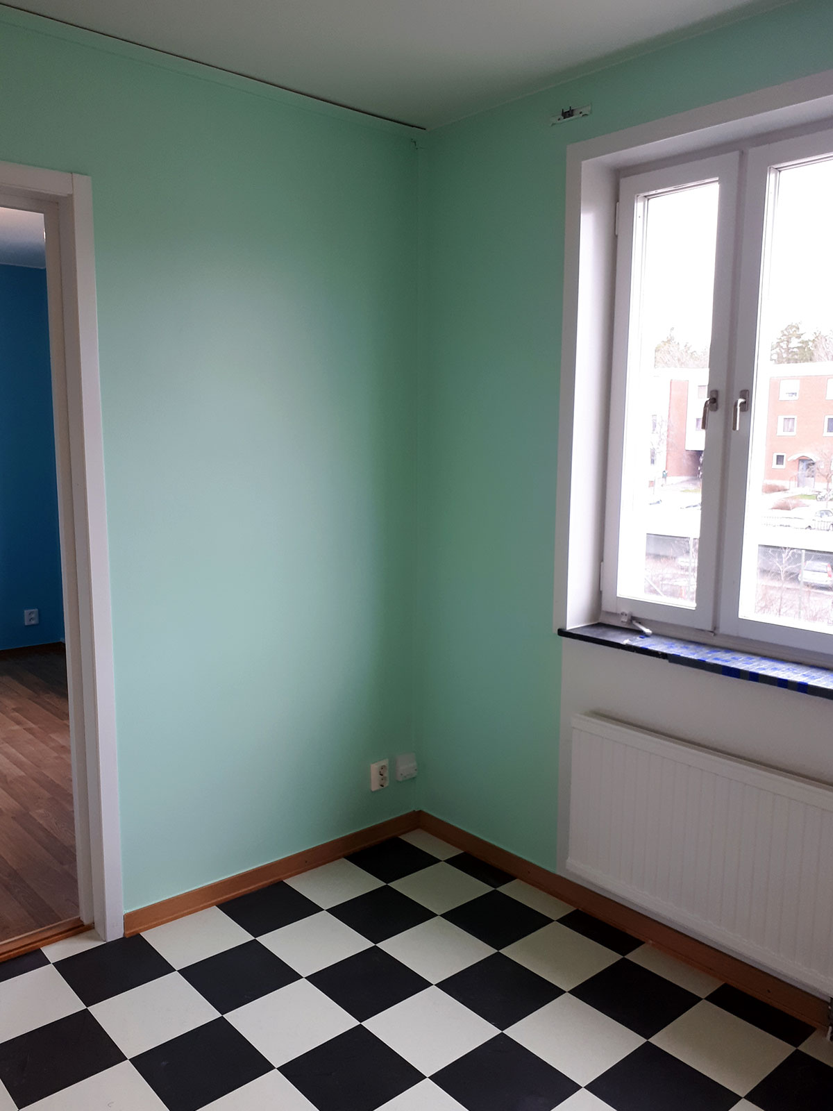 Invändig målning av lägenhet i Bagarmossen för Stockholmshem.