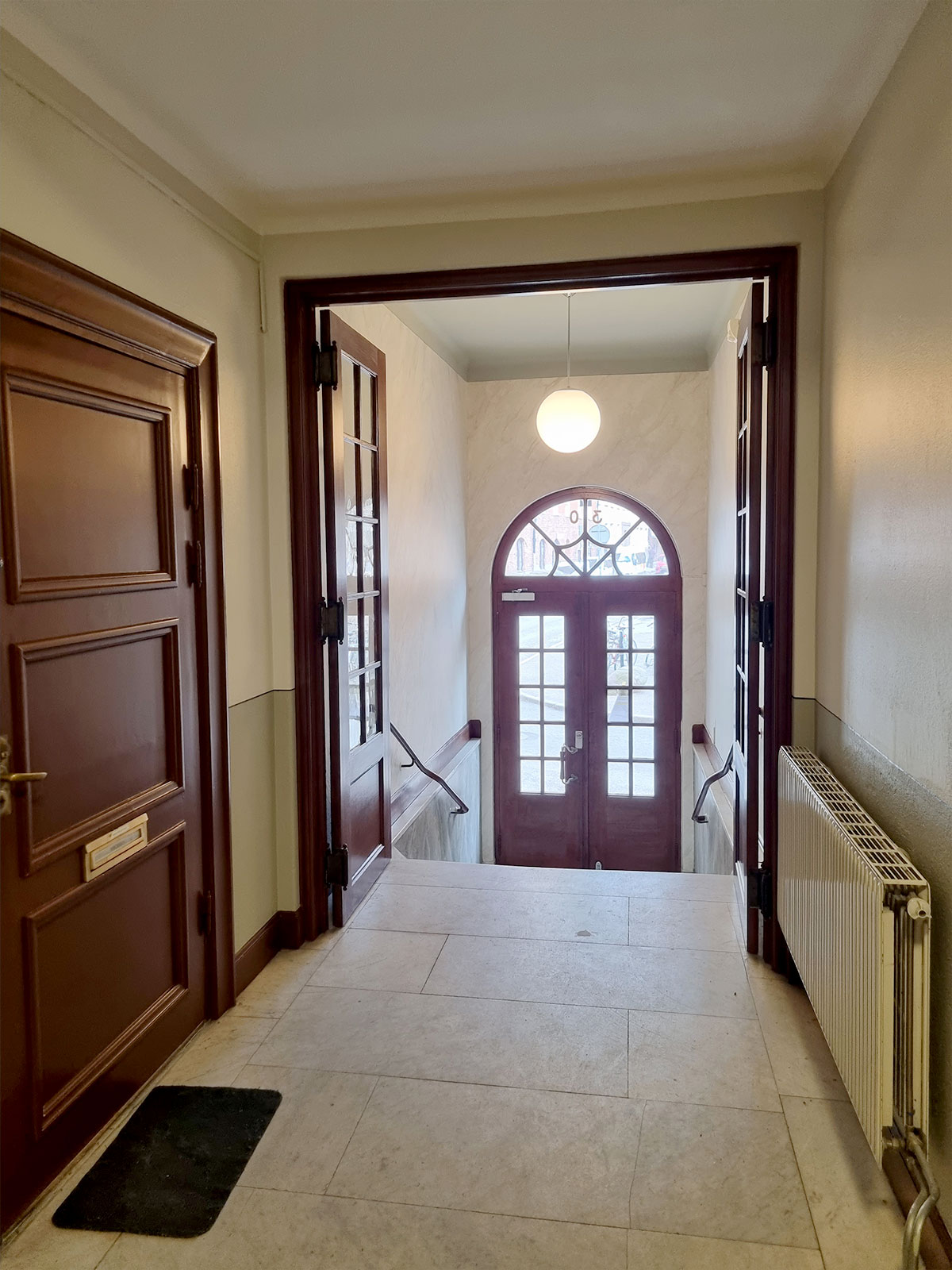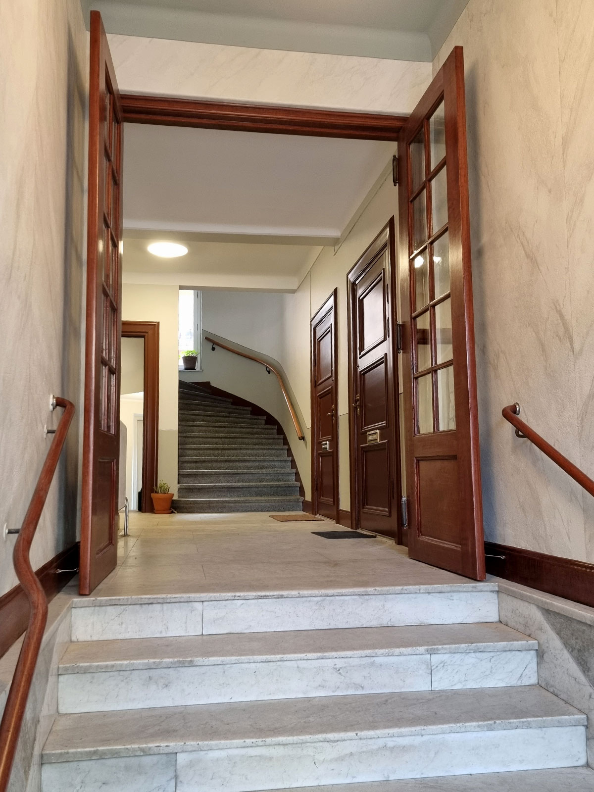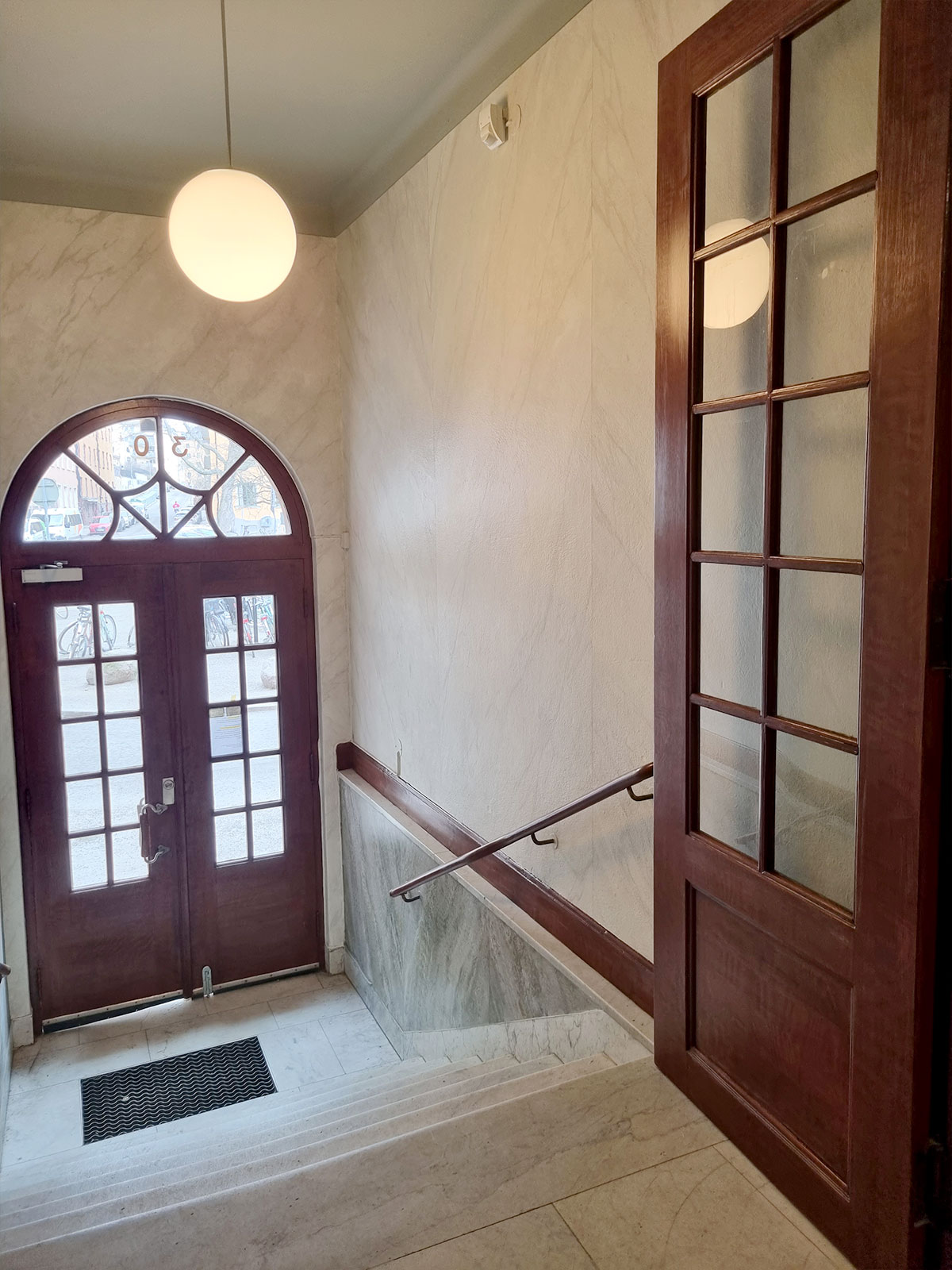 Bjurholmsplan, invändig målning samt marmorering av trapphus för Hellstedts Fastigheter.